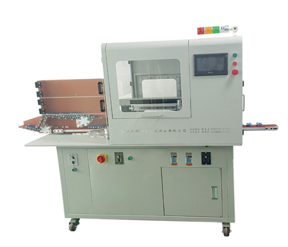 【進料】進料區(qū)域采用流水線自動進料,料斗一次性可投放約 500PCS 電芯