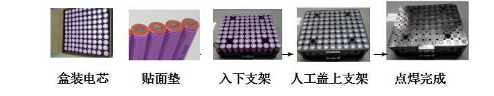2、電池組從盒裝電芯到焊接完成,只需要 3 名操作員作業(yè),后段組裝因工藝差異,有些崗位無法采用機(jī)器作業(yè),使用作業(yè)員數(shù)量有所不同