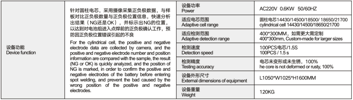 二、BT-CCD01電芯正負(fù)極檢測(cè)機(jī)參數(shù)
